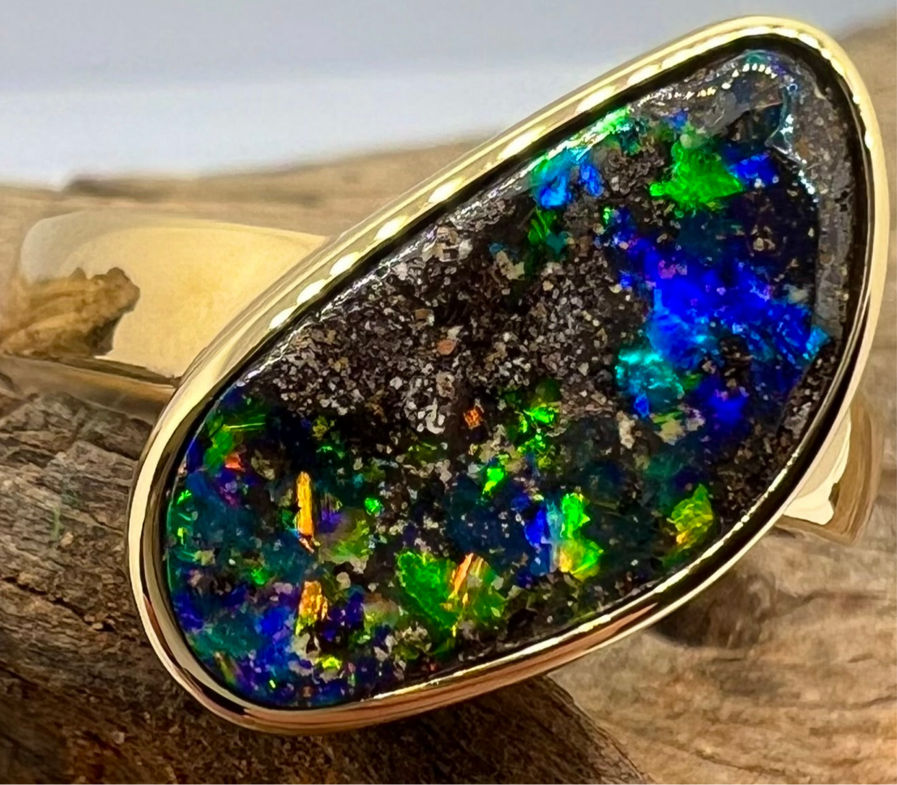 Formed when opal seeps into the crevices of ironstone boulders deep within Queensland’s sunburnt earth, it emerges as a gemstone unlike any other: a canvas of vivid fire dancing across a rugged, earthen backdrop.